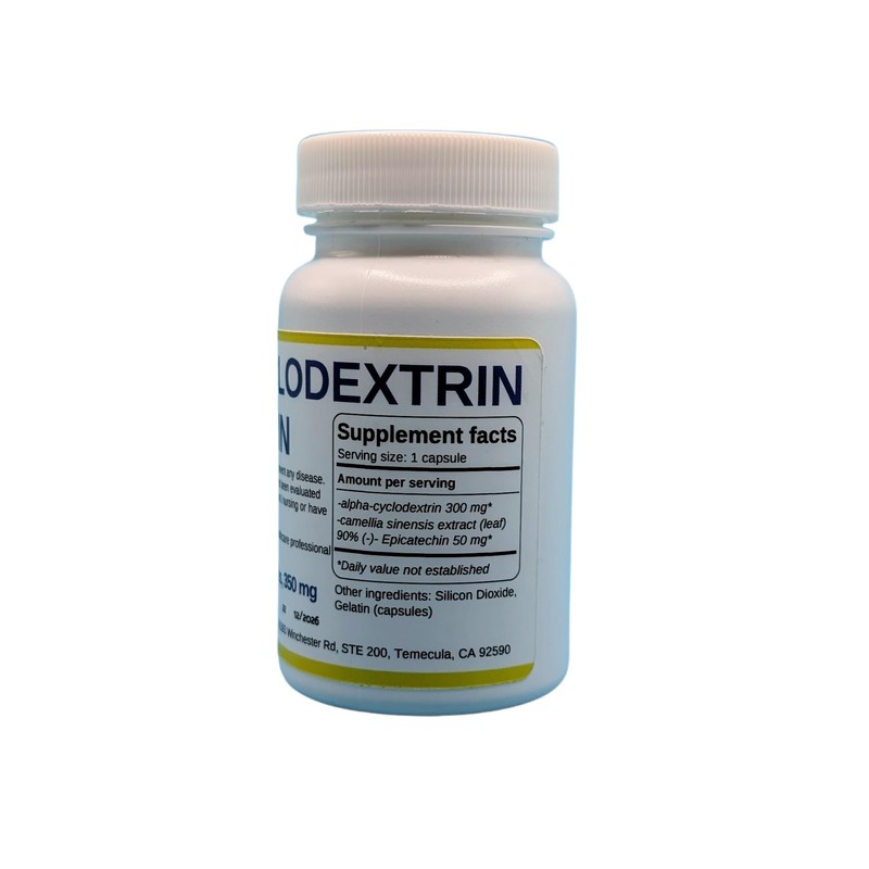 - Alpha-Cyclodextrin - 300 mg Epicatechin - 50 mg 60 capsules total