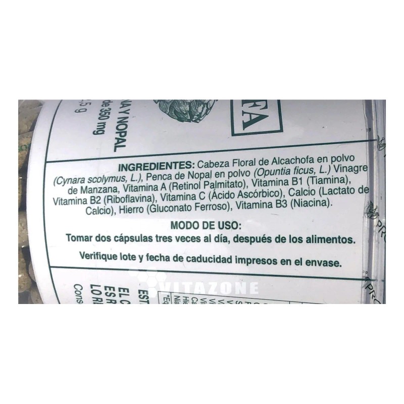 Alcachofa 150 Cáps Vinagre De Manzana Y Nopal Prosa. Sabor Sin sabor
