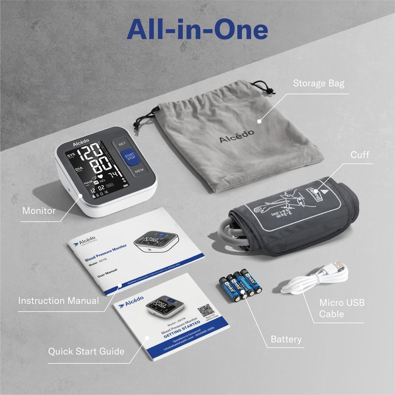 Alcedo Blood Pressure Monitor for Home Use, Automatic Digital BP Machine with Large Cuff for Upper Arm (Black Backlit Screen)
