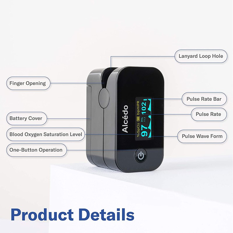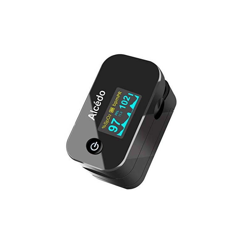 Alcedo Pulse Oximeter Fingertip | Blood Oxygen Saturation Level (SpO2) and Heart Rate Monitor | Dual Color OLED Display | Portable Carry Case, Lanyard, Batteries