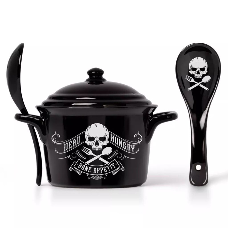 Feeling 'Dead Hungry' enjoy your meal from this unique lidded bowl and spoon set, 'Bone Appetit'!!