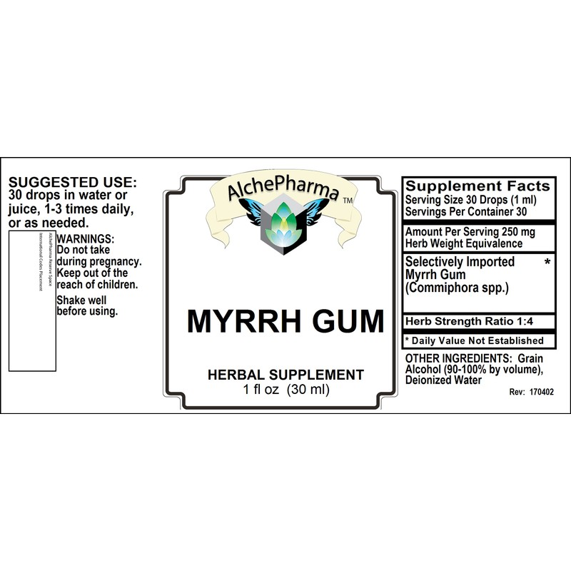 AlchePharma Myrrh Gum Liquid (Commiphora myrrha) HSR 1:4 PARVE K-1604 (1 fl oz)