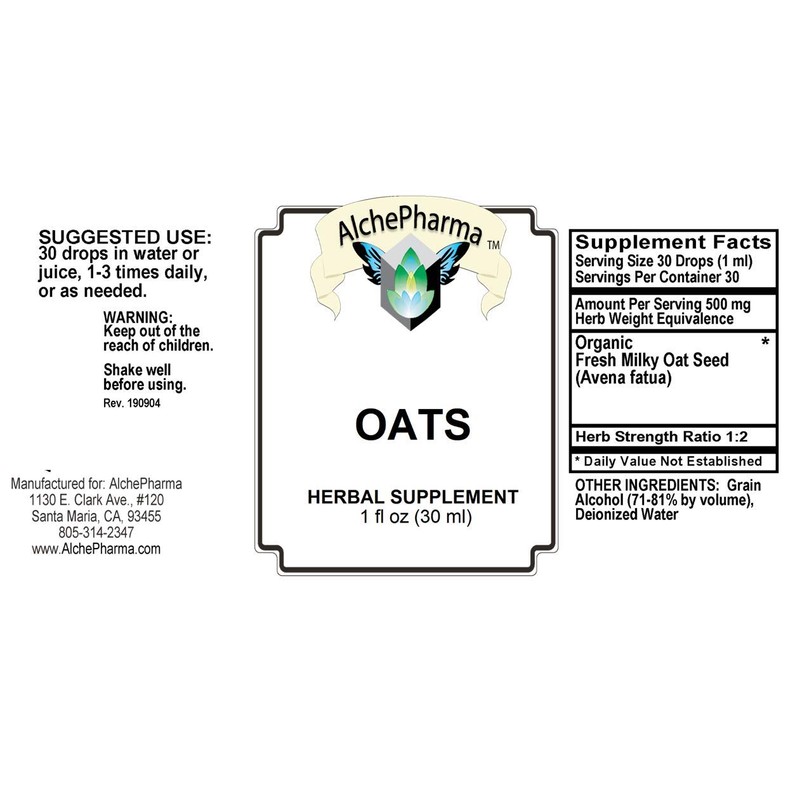 AlchePharma Oats- Organic Fresh Milky Oat Seed Tincture (Avena Fatua)
