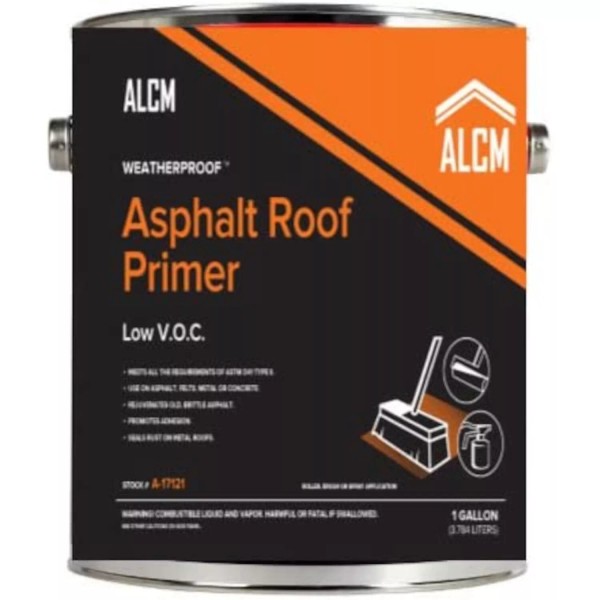 The ALCM Asphalt Primer is a premium blend of asphalts and solvents formulated to penetrate and restore lost oils of old, dry roofing felts. This low VOC primer provides a sound base for the application of asphalt coatings, adhesives, emulsions, and cements. The recommended application rate for this primer is 8 to 16 mils of wet film thickness. ALCM manufactures this Asphalt Primer for use on weathered metal and previously uncoated concrete roofs.