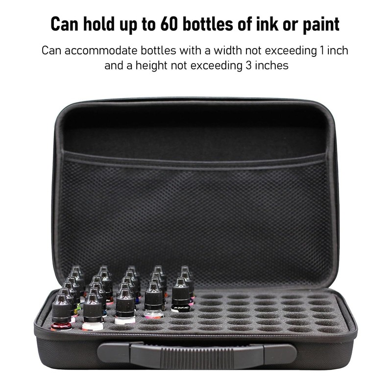 - Multipurpose: The storage organizer can hold up to 60 bottles of ink or paint and accommodates bottles up to 1in in width and 3in in height. It's ideal for ink storage case, paint box, model supplies box, alcohol ink organizer, paint briefcase, or mini paint organizer.