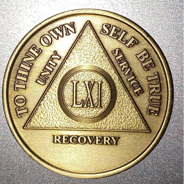 Alcoholics Anonymous AA 61 Year Bronze Medallion Coin Chip Token Sobriety Sober.