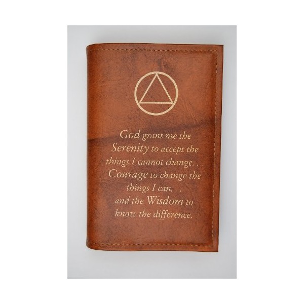 Alcoholics Anonymous Big Book Cover Serenity Prayer & AA Symbol Tan