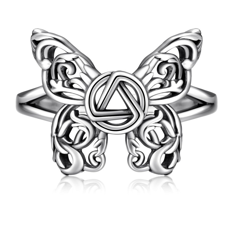 Alcoholics Anonymous Butterfly Adjustable Rings Sterling Silver One day at a time Sobriety Gifts for women AA Jewelry, Silver, No Gemstone