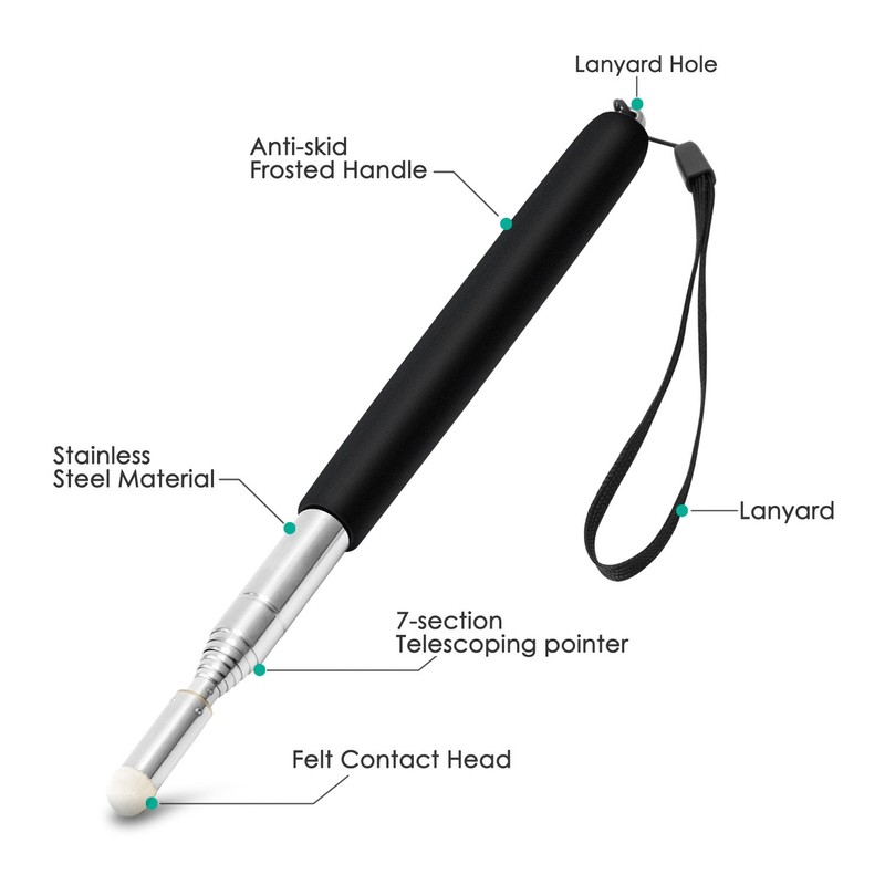 - TELESCOPIC DESIGN POINTER - 7 section extendable pointer, durable, portable, extendable, retractable, easy to carry and store