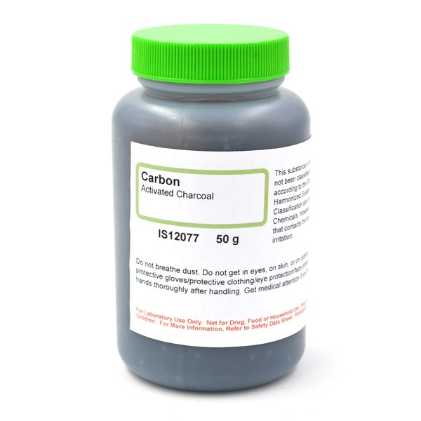 Innovating Science's carbon-activated charcoal comes in a 50g bottle. Often used for carbohydrate chromatography, this makes the chemical a perfect fit in any educational lab dealing with chemistry or organic chemistry. Each bottle has safe handling and storage procedures printed directly on the bottle. This is a high quality chemical product manufactured in the United States.For Laboratory Use Only. Not for drug, food or household use. Keep out of reach of children. For more information, refer to the Safety Data Sheet.