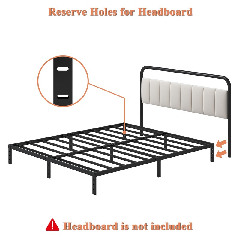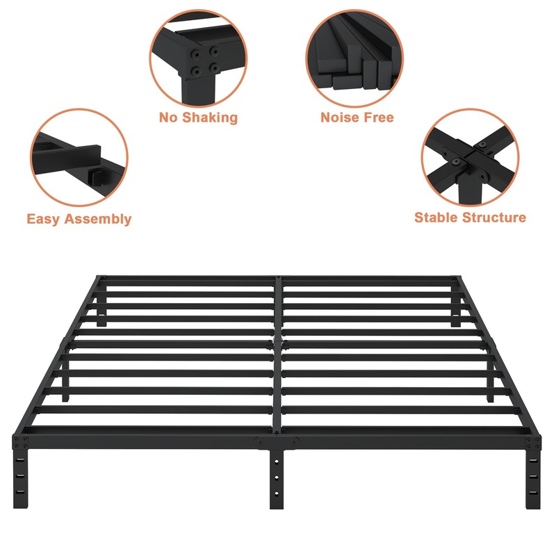 - NOISE ELIMINATION - No Box spring needed for the metal bed frame queen. Rubber cushion of the metal bedframe queen-size is good for noise elimination, Every bed legs designed with non-scratch gaskets to protect your fancy floor and provides you with a peaceful sleep.