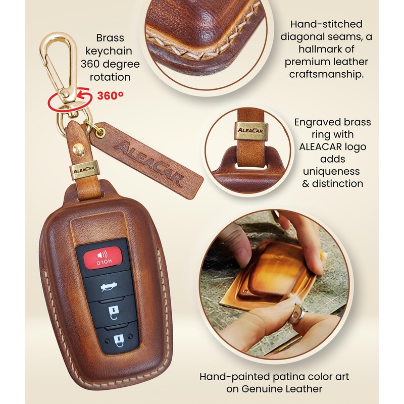 ALEACAR Premium Leather Key Fob Cover & Keychain for Toyota, Handcrafted, Smart Protector, Durable, Stylish, Fits RAV4 2019-2024, Camry 2018-2024, Highlander 2020-2022, Corolla, Prius, Avalon (Brown)