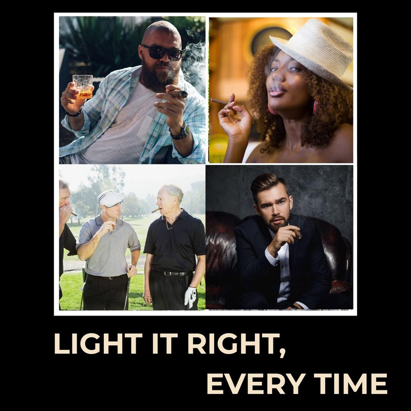 - Large flame lights cigars instantly, rotating cigar not necessary