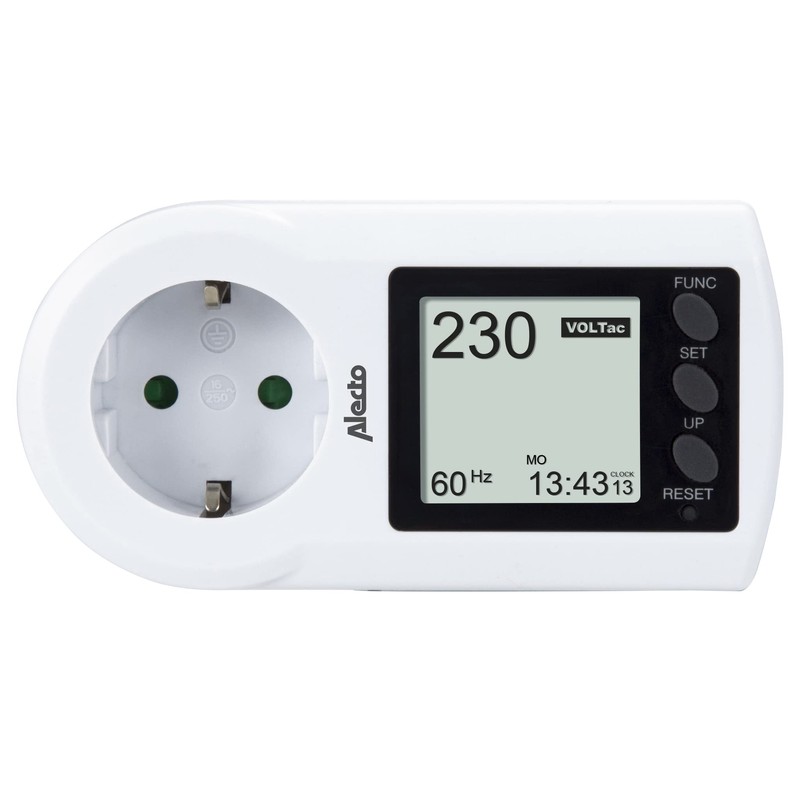 - Energy cost meter: With the Alecto EM-17, the real energy consumption of a connected device is measured, reproduced and the costs determined.