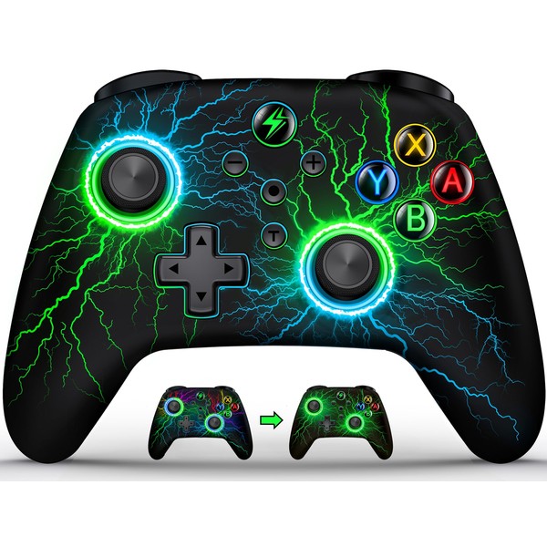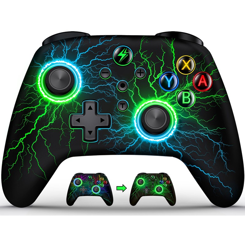 • Blendendes Beleuchtungsdesign ---- Das Design des Switch Controller ermöglicht es, dass die Öffnungen für ABXY/HOME/dualen Joystick beleuchtet werden können. Die Lichttaste auf der Rückseite des Controllers kann die Farbe und den Modus der Beleuchtung ändern. Die RGB-Beleuchtung des Controllers verleiht eine ästhetische Note und verbessert gleichzeitig die Sichtbarkeit in dunkler Umgebung. Dadurch wird die visuelle Attraktivität gesteigert und ein faszinierendes Spielerlebnis geschaffen!