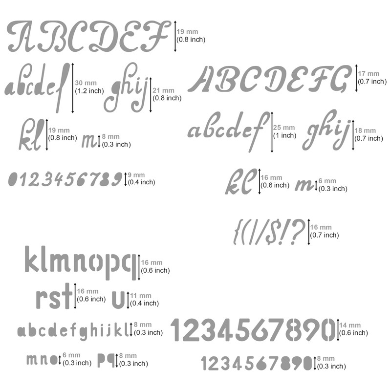 - Metal Stencils - Very Small multiple fonts, Letter Cursive, Lettering Alphabet Number