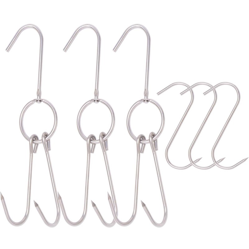 Alele 3pcs Stainless Steel Double Hooks + 3pcs S-Hooks for Meat Processing Butcher Hook Hanging Drying BBQ Grill Cooking Ideal for butchers, chefs, meat processors, perfect tool for hunters, BBQ grill masters, butcher shops, restaurant kitchens or other food prep settings. Heavy Duty Stainless Steel Meat Processing Butcher Hook S Type Hooks Food Safe for Butcher Meats, Organizing Utensils, Pots and Pans Meat Hooks Butcher Hook Double Hooks Processing Meat Hook Stainless Steel Rotary Device Slaughtering BBQ Chicken Duck Hooks Slaughter house meat processing factory barbecue processing hanging meat Package Includes: 3 x Double hooks 3 x S type hooks