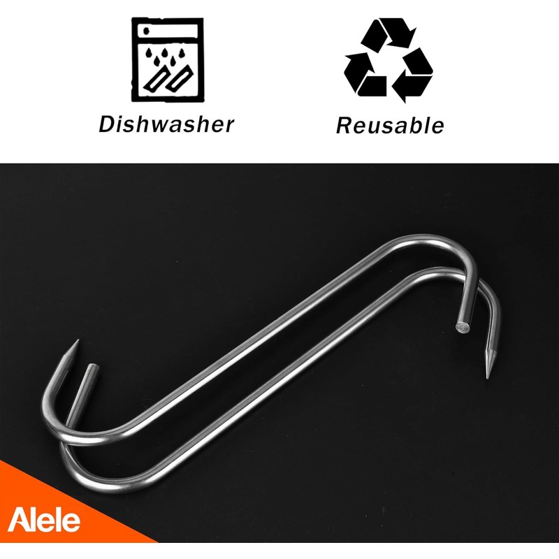 Alele Meat Hook 4pack Heavy Duty S-Hooks 10" Stainless Steel Meat Hooks Processing Butcher Meat Hooks for Butchering 4 Pack (10inch 8mm 4p)