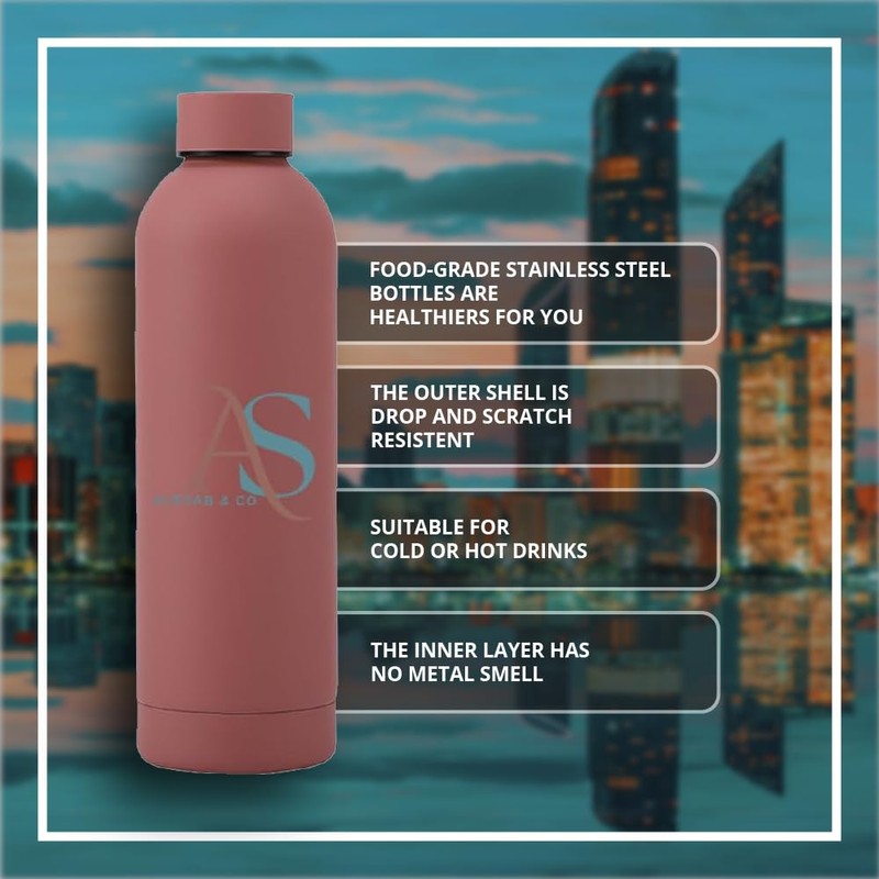 ALESAB & CO Thermal Insulated Metal Water bottle, Outdoors drinking bottles travel flask for Hot drink and Cold,Double Walled,Leakproof (Smoke Pink, 500 ML)