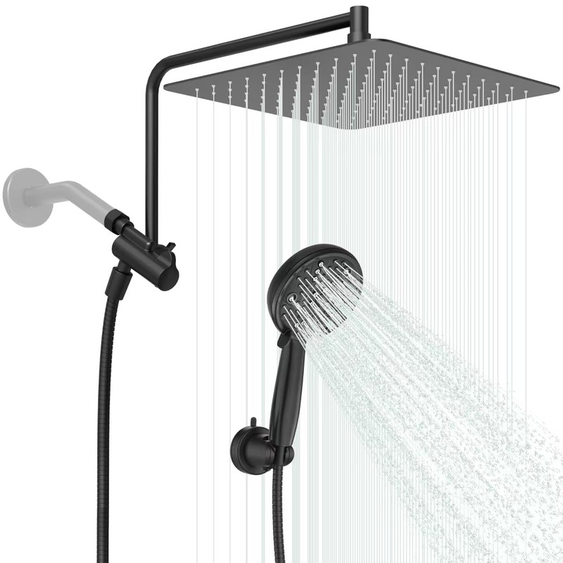 - Upgraded 12" Extended Arm: The right angle-shaped practical shower arm allows for adjustable height and angle, enabling your large shower head to be positioned at any angle without hitting the shower arm. Enjoy a comfortable shower experience
