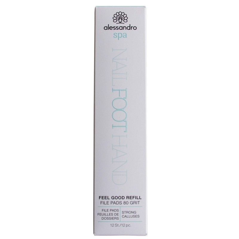 - Box contents: alessandro Spa feel good disposable file blades, pack of 12. 80 grit