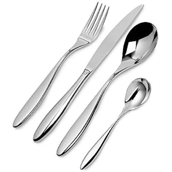 Consists of 1 dinner spoon, 1 dinner fork, 1 dinner knife, 1 coffee spoon