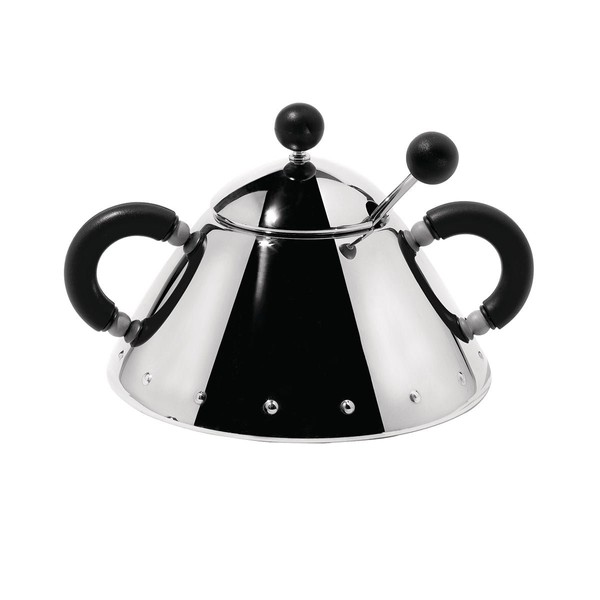 Alessi - Sugar Bowl with Spoon - Colour: Black - Stainless Steel - Michael Graves