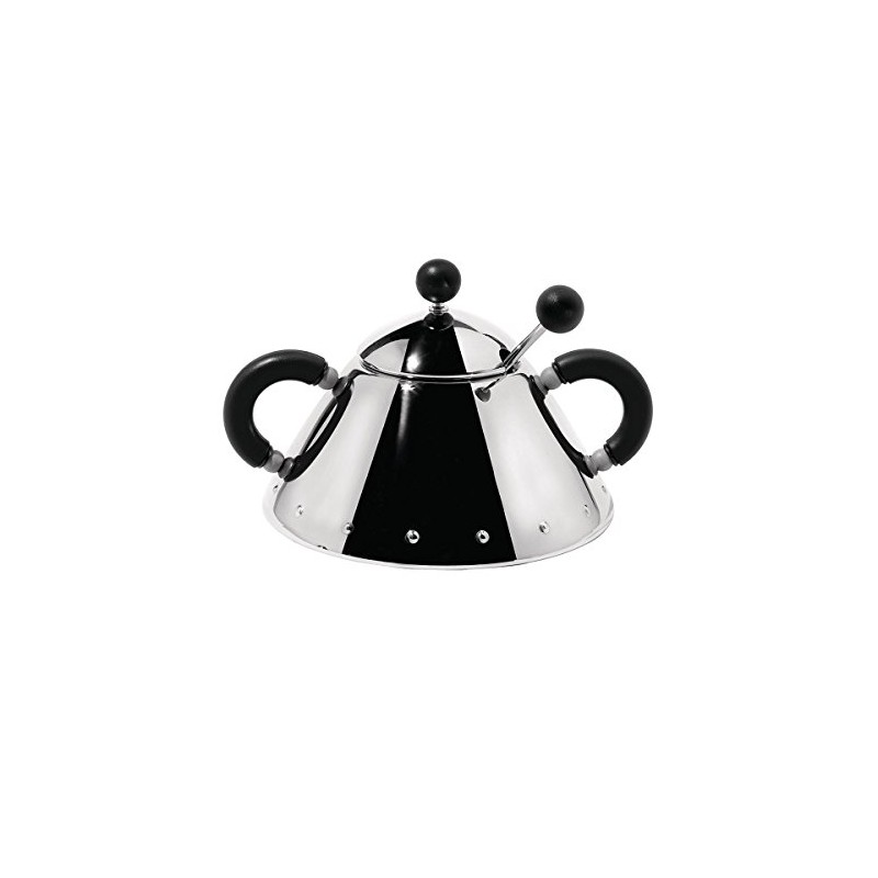 Alessi - Sugar Bowl with Spoon - Colour: Black - Stainless Steel - Michael Graves