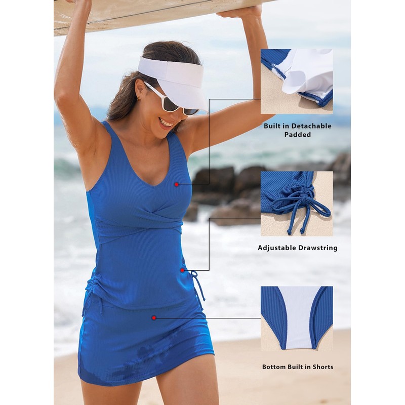 - Ribbed Material: Made from soft ribbed fabric, 90% Polyester+10% Elastane,tankini bathing suit is stretchy, breathable, and quick dry. The ribbed material adds texture and style to the swimsuit while ensuring durability and long-lasting wear