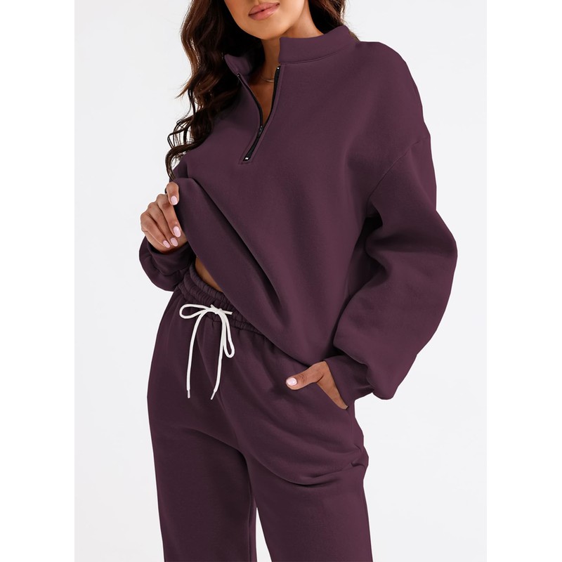 - Features: This athleisure women tracksuit sets designed a long sleeves quarter zipper hoodie sweatshirt with a joggers pants. Both are designed in simply solid color and basic design, and they will never go out of date