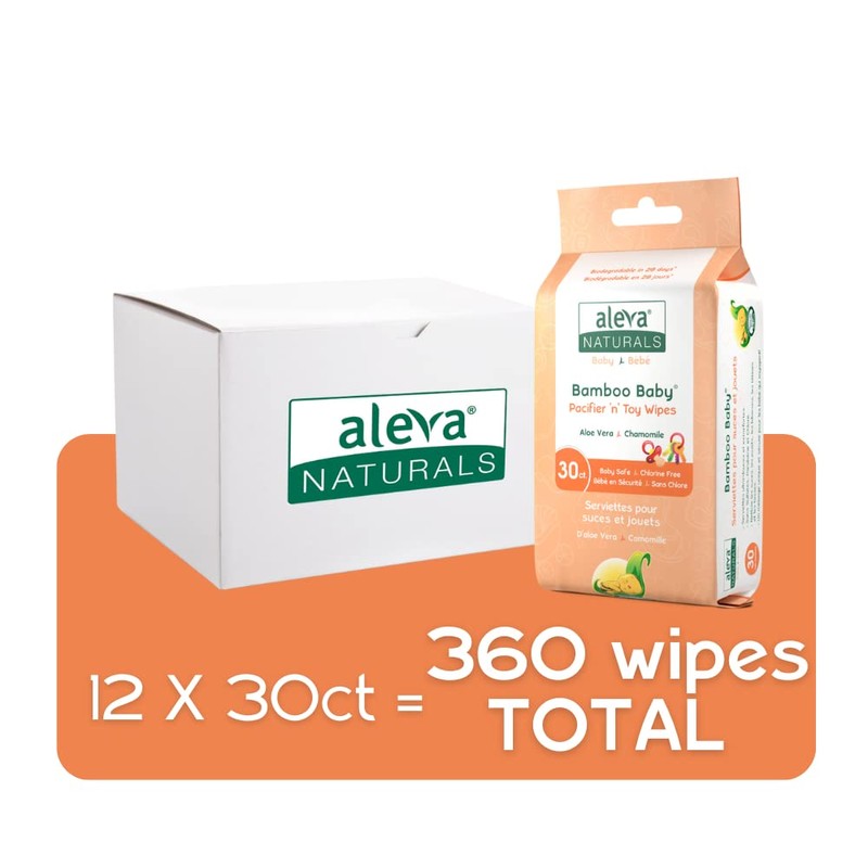 Aleva Naturals Bamboo Baby Pacifier and Toy Wipes | Natural and Organic Ingredients with Lemon Oil | Safely Cleans Bottles, Nipples, Cups | Extra Strong and Ultra Soft - 30 count (Pack of 12)