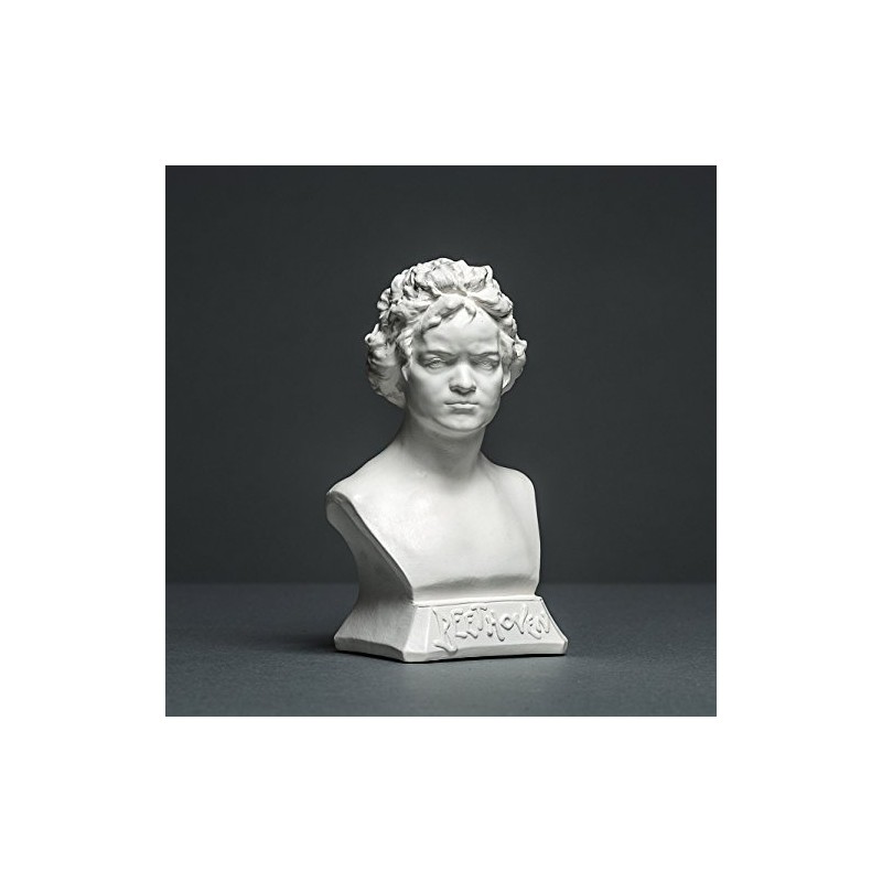 Alex Agwanjan Beethoven Sculpture Made of High-Quality Zellan, Handmade, Made in Germany, Bust in White, 12 cm