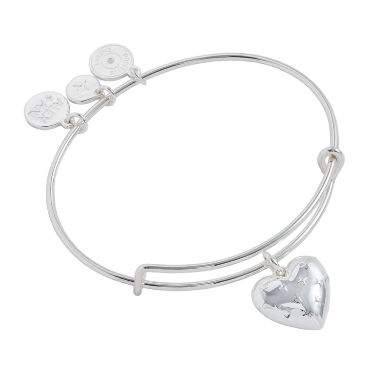 - Design: expandable bangle with heart charm and tonal starburst detailing