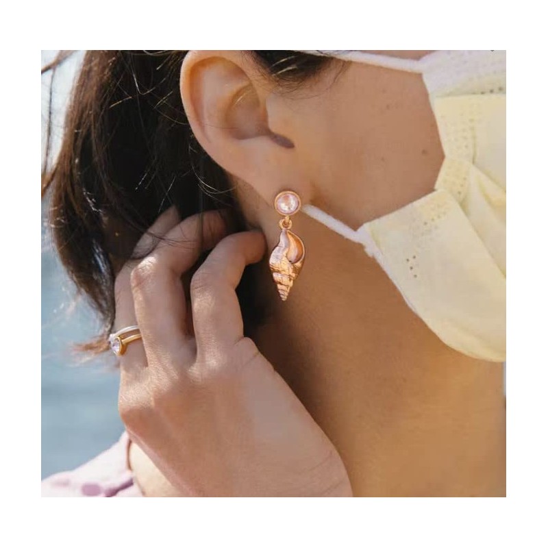 Alex and Ani Seaside Drop Earrings for Women, Conch Shell, Shiny Rose Gold Finish, Post Back