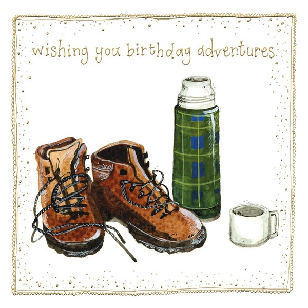 Alex Clark Birthday Adventures Foil Card - Camping, hiking, walking.