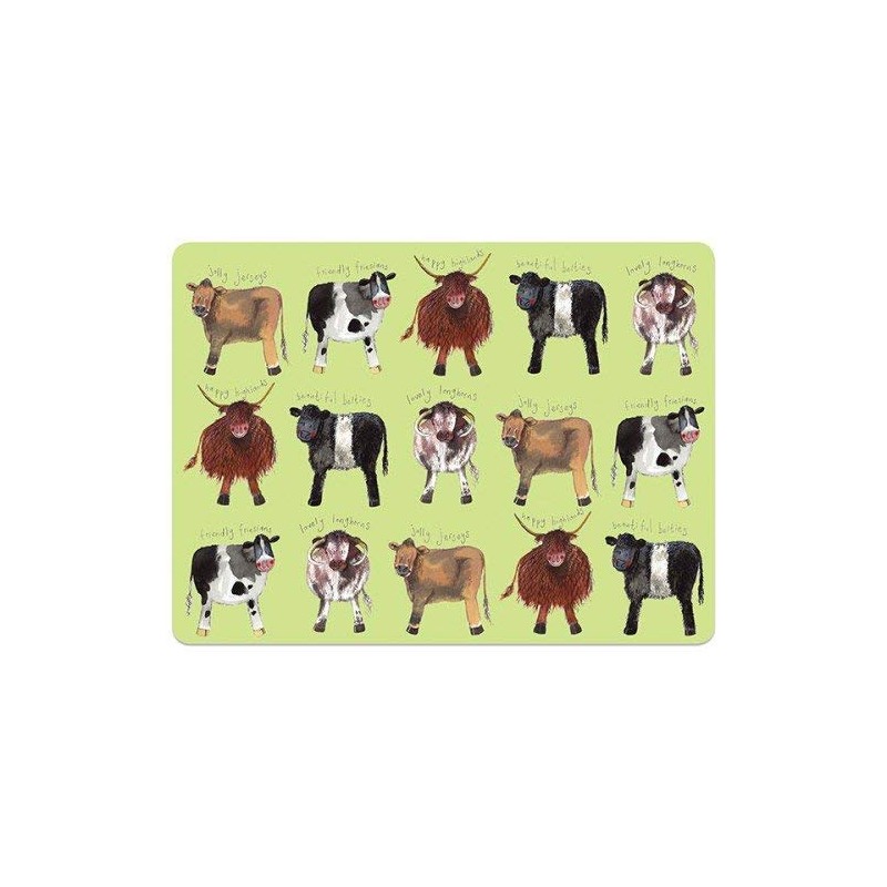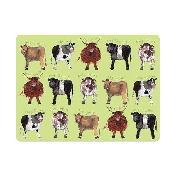 Alex Clark Cow Collection Place Mat for Dining Table (single) - Green - Watercolour Design - Cork Back
