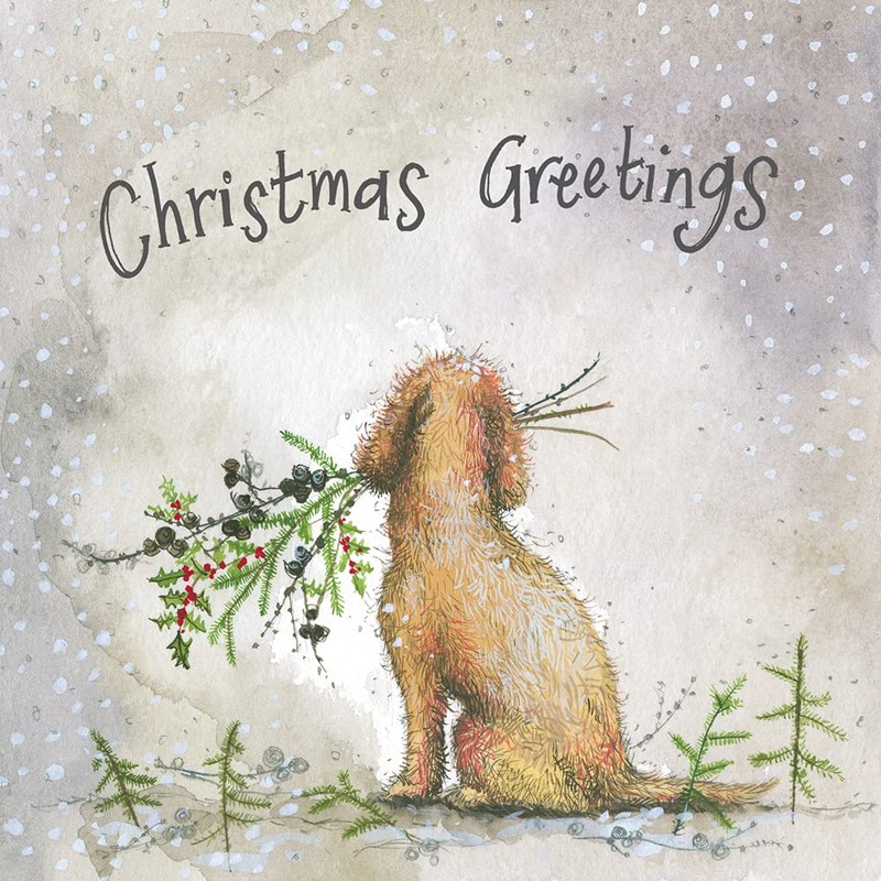 ALEX CLARK Dog and Larch Christmas Card Pack of 5