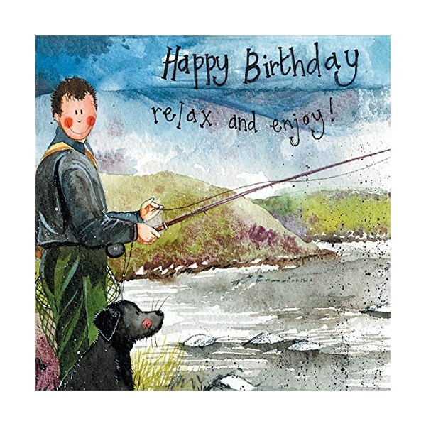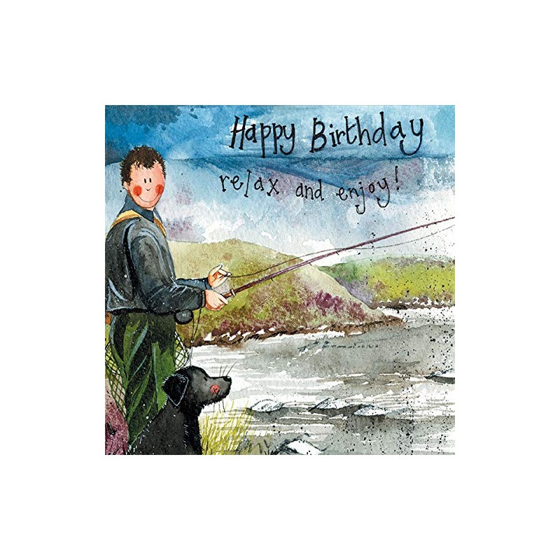 Alex Clark Gone Fishing Man & Dog Birthday Card