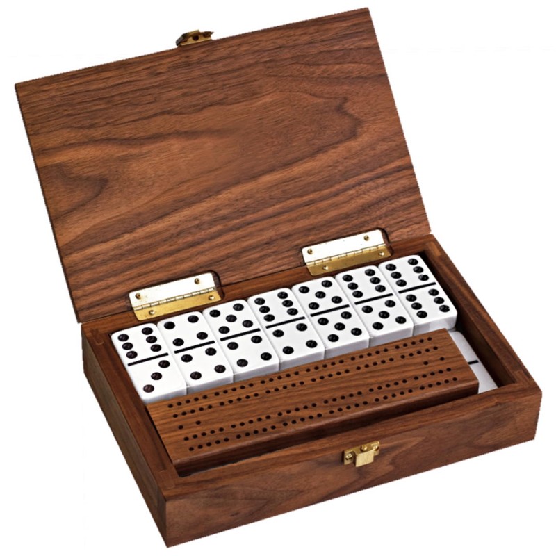 - AMERICAN GROWN BLACK WALNUT CASE Made in USA with polished brass closure, brass accents & brass hinges. Measures 8-3/4" x 5-1/2" x 2-1/4". No-scratch felt bottom for protection of the case and your table. Our domino cases are American-Made by experienced woodworkers. All domino sets are assembled in the USA.
