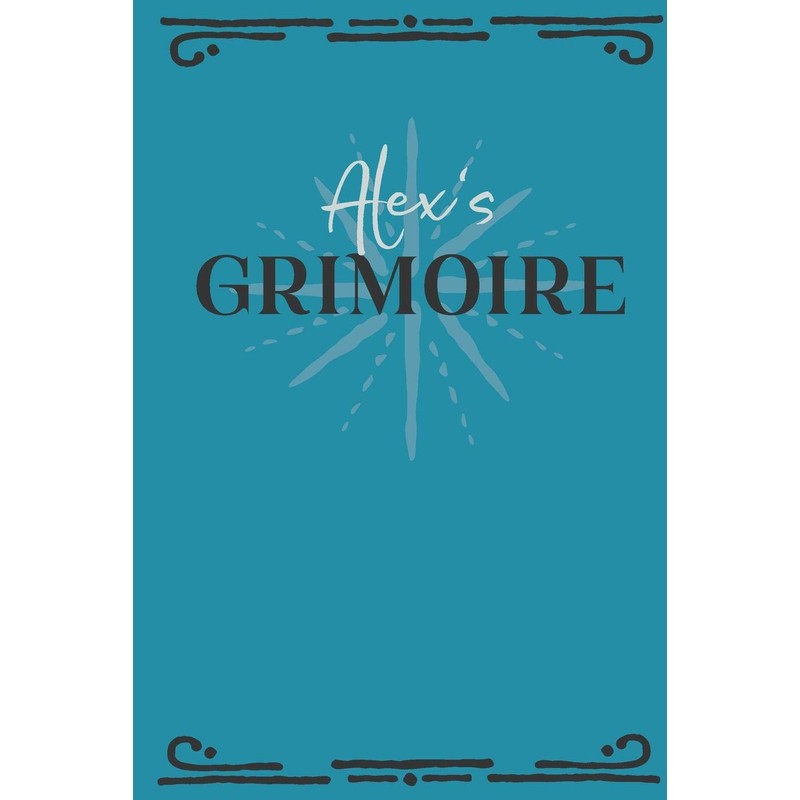 Alex‘s Grimoire: Personalized Grimoire Notebook (6 x 9 inch) with 162 pages inside, half journal pages and half spell pages.