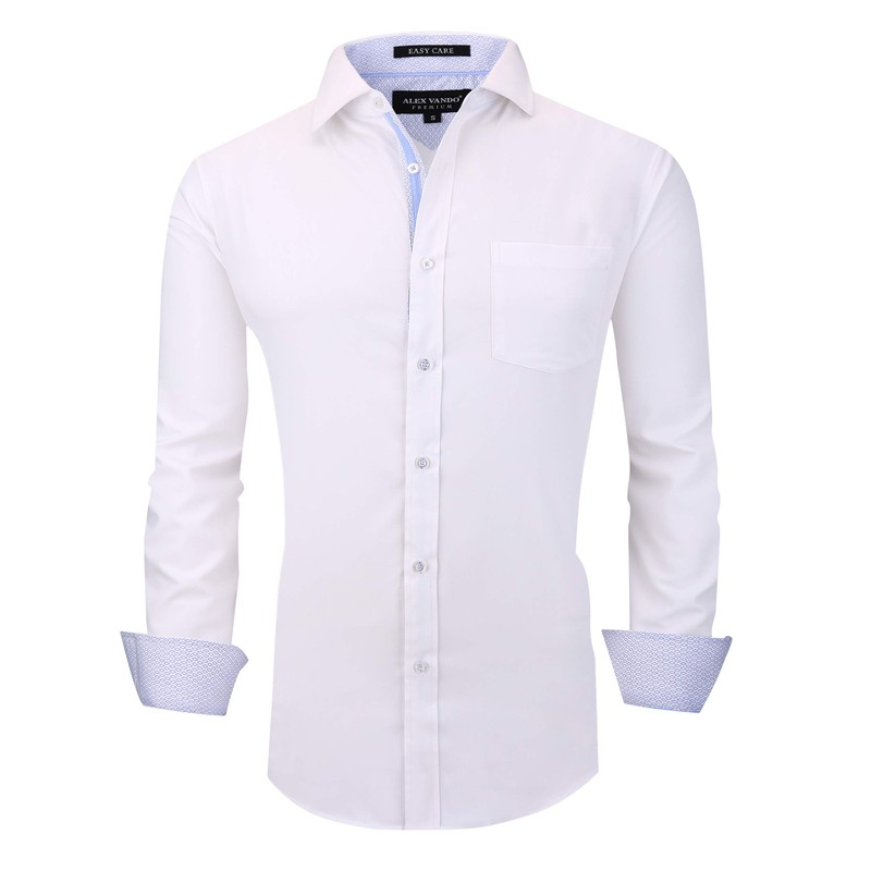 Alex Vando Mens Dress Shirts Wrinkle Free Regular Fit Stretch Rayon Bamboo Button Down Shirt,White,S