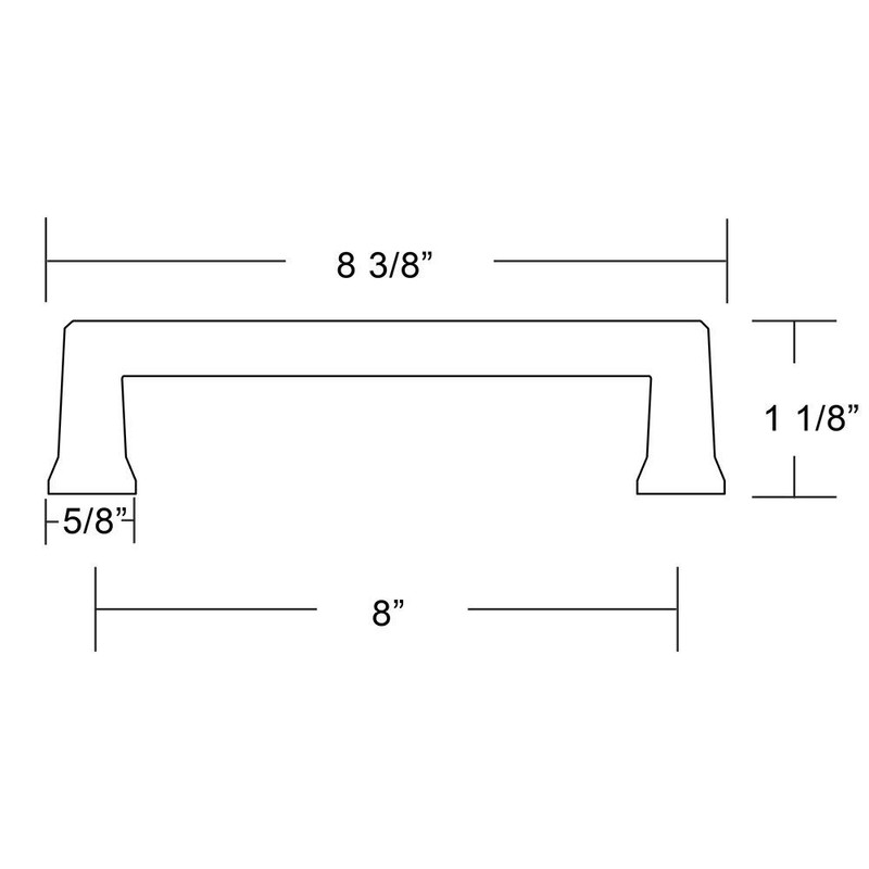 86427US26 Finish: Bright Chrome Features: -Alexander collection. -Screws included. Style: -Contemporary. Fasteners Included: -Yes. Pull Type: -Bar pull. Primary Material: -Metal. Dimensions: Overall Height - Top to Bottom: -1". Overall Width - Side to Side: -8.38". Overall Depth - Front to Back: -1.125". Overall Product Weight: -0.49 lbs.