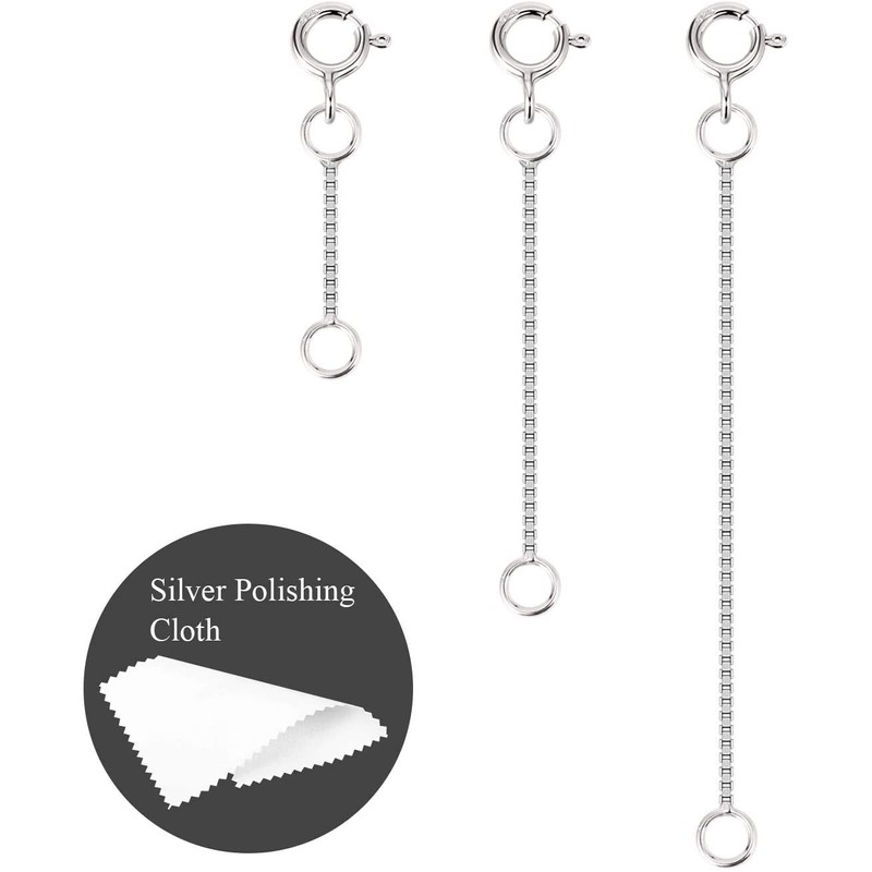 - Quantity: 3pcs sterling silver necklace bracelet extender chain(1,2,3 inches,one for each size), easily add the length of your jewelry. Multiple sizes meet your different needs. There have a silver polishing cloth in the package so that you can use it at any time