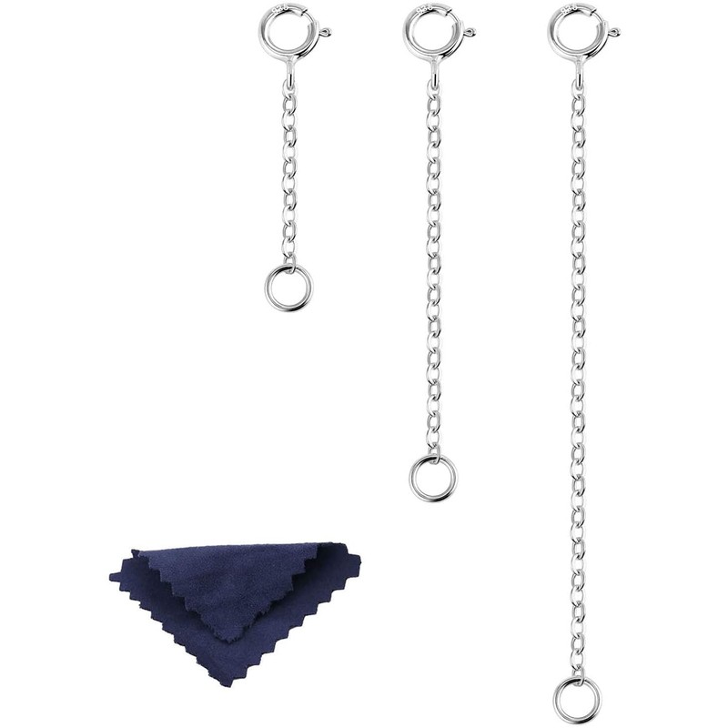- Sterling Silver Necklace Extender: 3pcs sterling silver necklace bracelet extender chain(1, 2, 3 inches, one for each size), easily add the length of your jewelry. Multiple sizes meet your different needs. There is a silver polishing cloth in the package let you keep the extender chains shiny