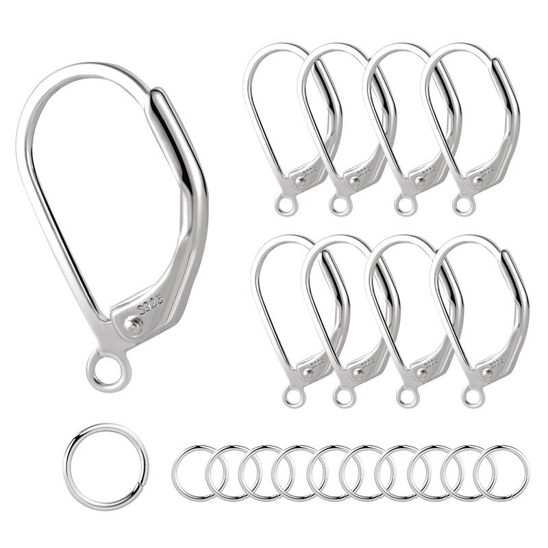 - 925 Sterling Silver Earring Hooks: Package includes 8pcs sterling silver French earring hooks and 10pcs jump rings. Just make your own earrings set with this dazzling silver earring hooks pack.