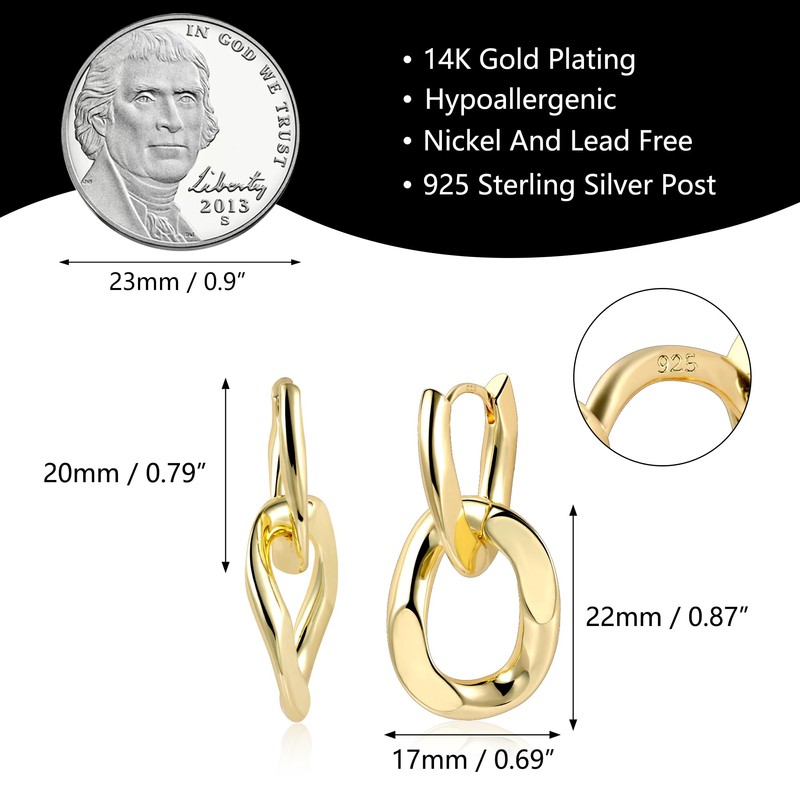 - Gold hanging hoop earrings: fits perfectly with your different wearing styles and outfits. The drop gold earrings are suitable for various occasions, such as engagement, anniversary, wedding, prom, graduation, party.