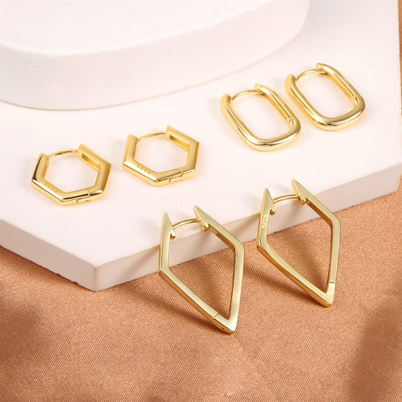 | Color: | Set mit geometrischen Creolen aus Sterlingsilber, 3 Paar, Gold |