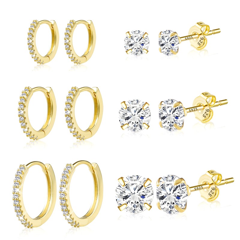- ❤6 PAIRS STERLING SILVER POST EARRINGS SET FOR WOMEN: You will get 6 pairs 925 sterling silver post earrings for women, including 3 pairs of unilateral cz hoop earrings, and 3 pairs of four claw cz studs. Hypoallergenic earrings set is simple and chic. Suitable for any occasion and any style of outfit. These gold earrings for women are suitable for all face shapes, dainty and classic for wearing alone or stacking with other earrings.