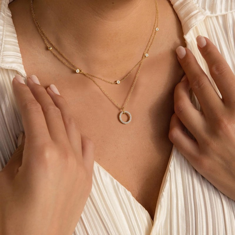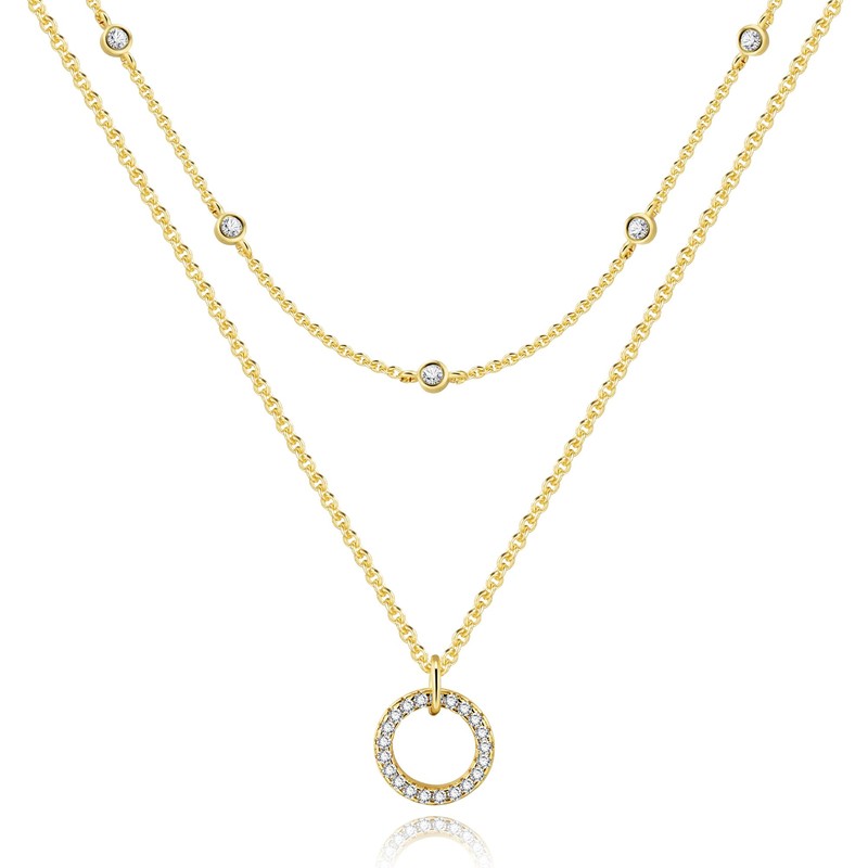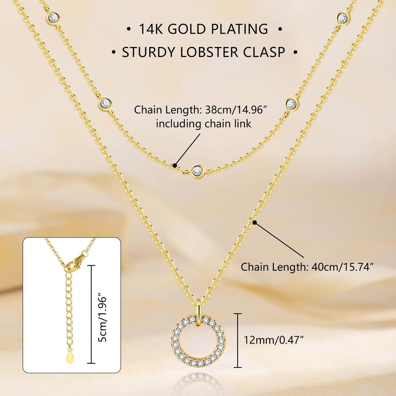 - 【Double Layer Necklaces DESIGN】Multi-layer gold necklace in 2-in-1 design, it consists of a classic chain with spherical cubic zirconia and a necklace with zircon circle pendant. The layers of the necklace are fixed and cannot roll together when worn. Comes with an extension chain, you can adjust the length to fit your neck at any time.
