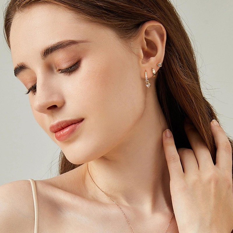 The package contains 3 pairs of heart hoop earrings and heart stud earrings, an indispensable accessory for everyday use.